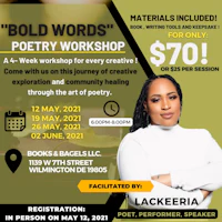 Includes four 2-hour workshops, Writing Materials and Course Book ; Tupak Shakur’s “The Rose that grew from concrete”. And a Bold Words Custom Keepsake!